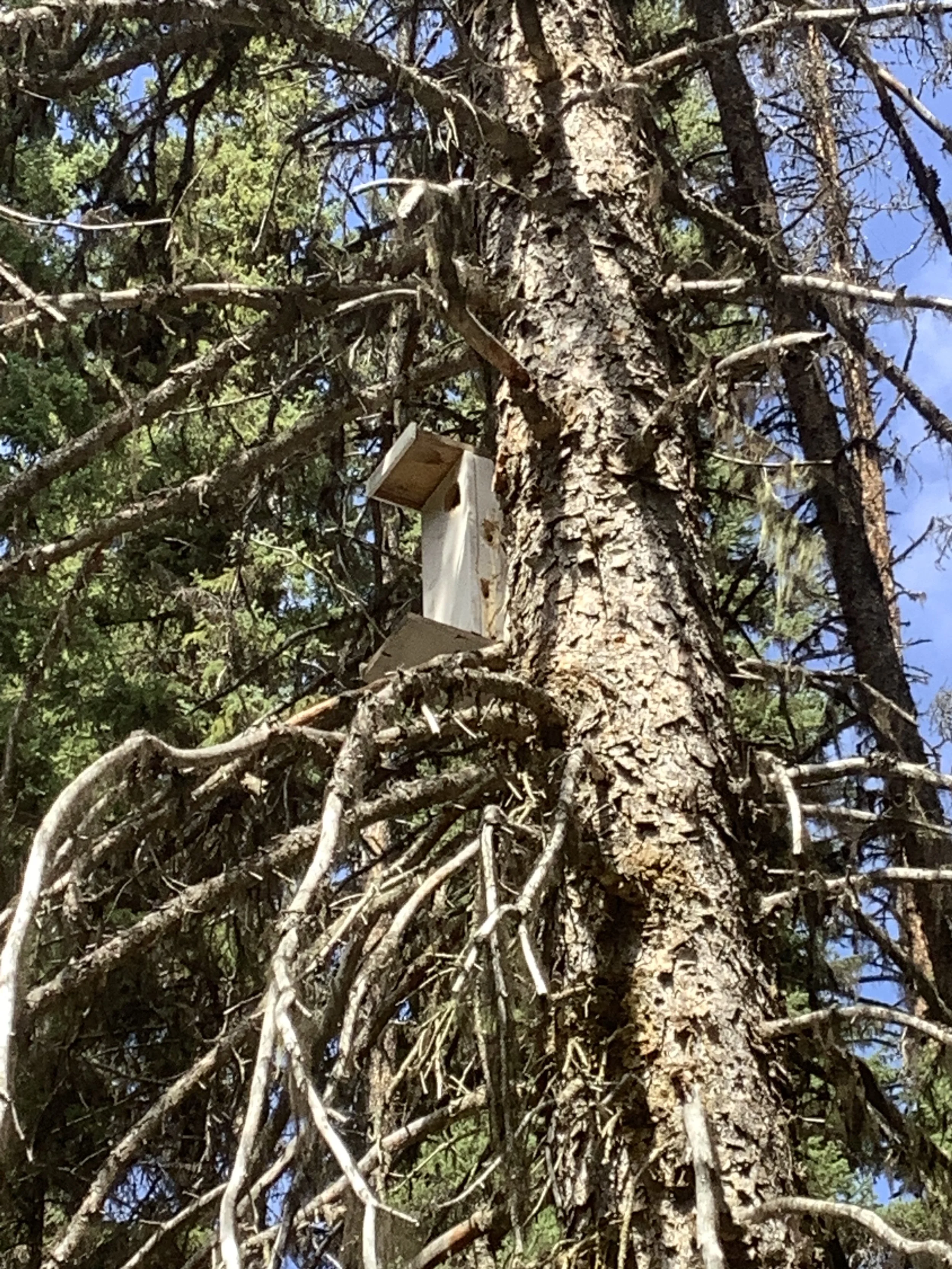 To bring marten back into these areas, we’ve begun a trial where we’ve built some marten boxes and placed them in trees to see if the marten will use them for nesting. These forests presently contain lots of prey for marten (voles, mice, squirrels) but no place for the marten to nest. Over the next two years we will see if marten will start to occupy these boxes.